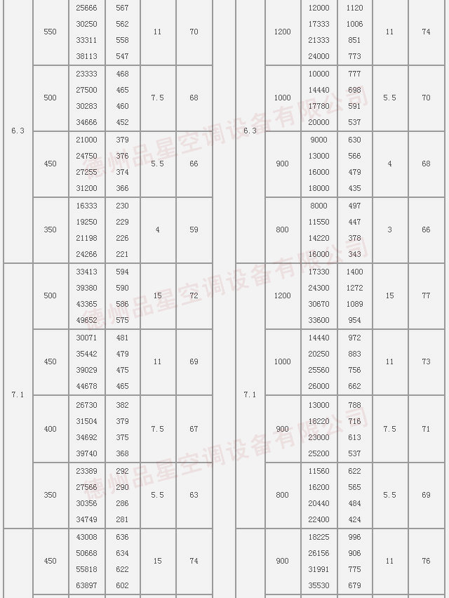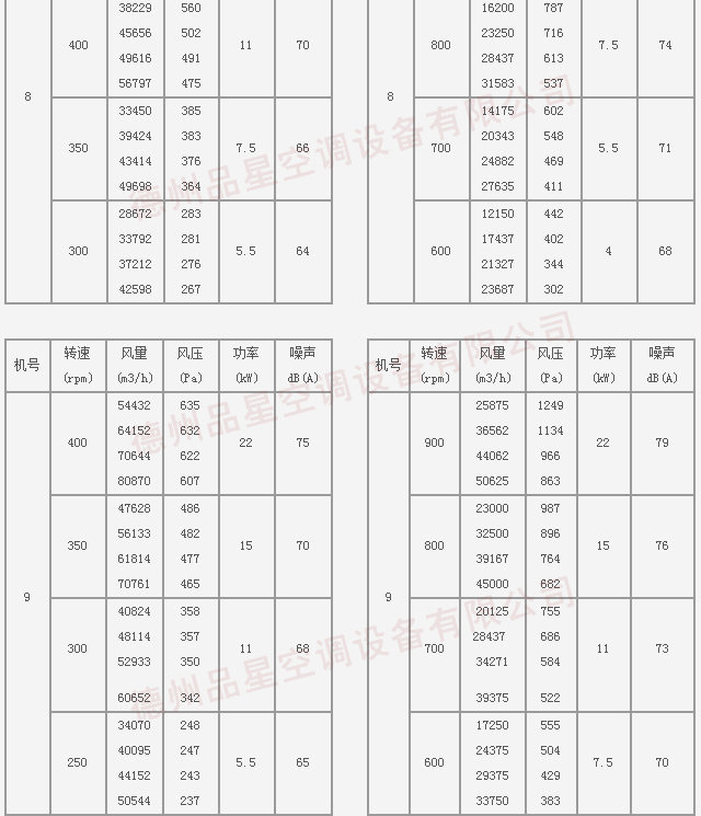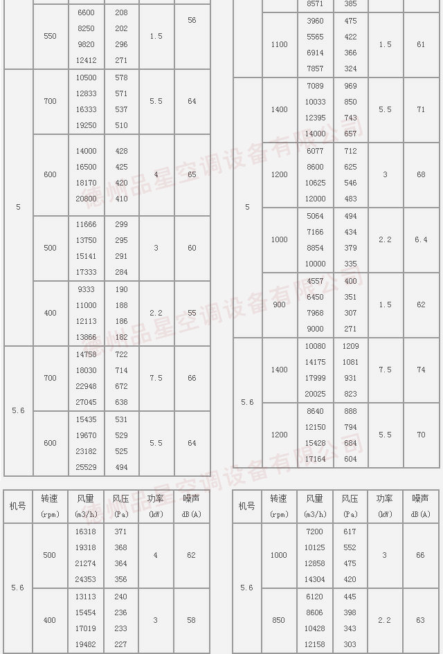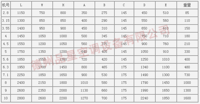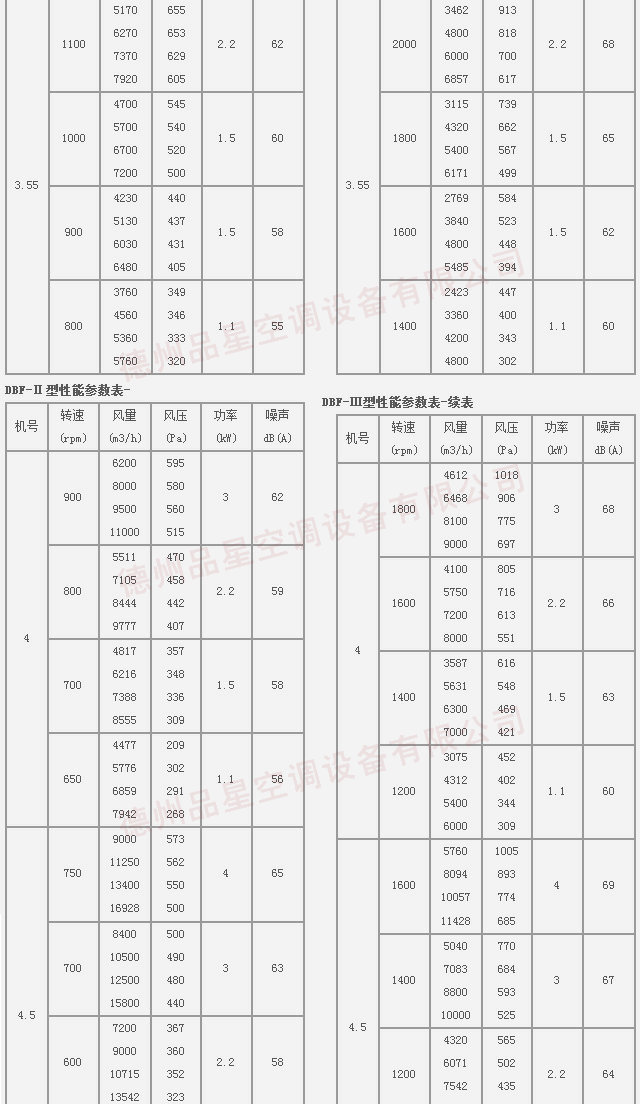 四、DBF-Ⅱ、Ⅲ型風機箱外形尺寸表(單位:mm)