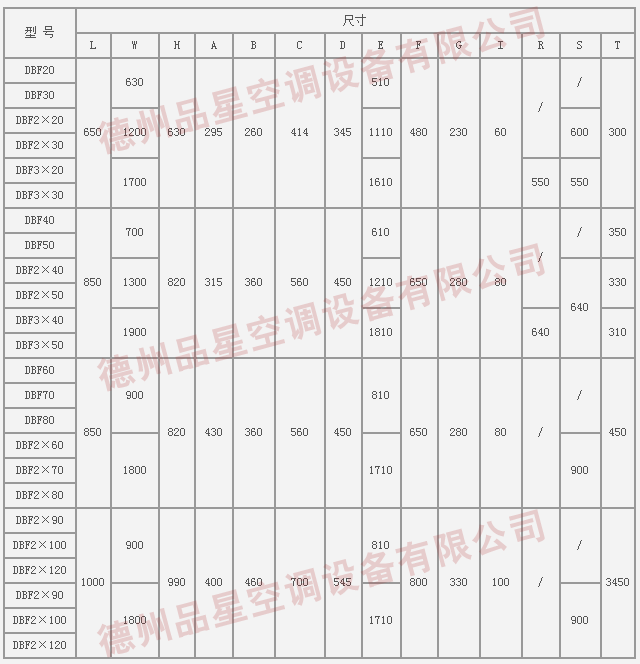 三、DBF-Ⅰ型外形尺寸表(單位:mm)