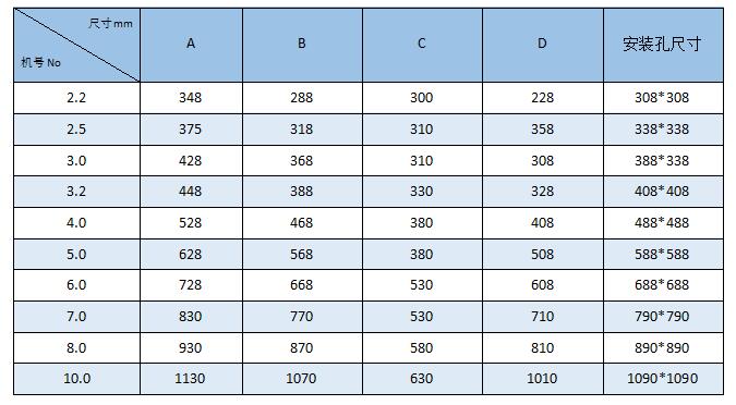 二、ZDBZ系列低噪音方形壁式軸流風(fēng)機(jī)外形尺寸及安裝孔尺寸表