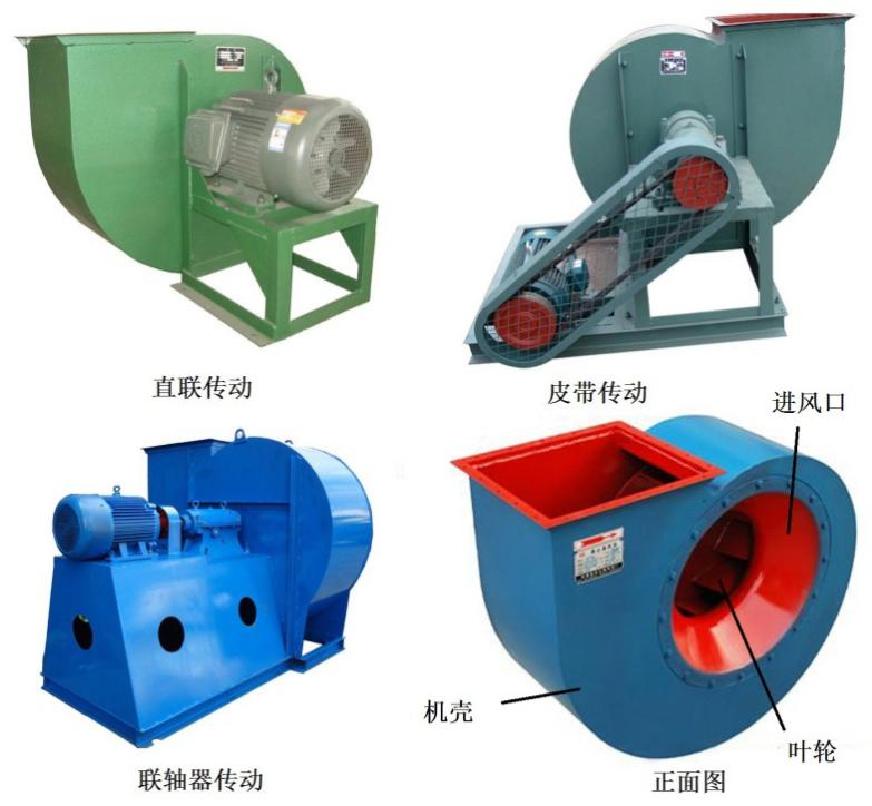 4-72型離心通風(fēng)機(jī)中,№2.8A~ 6A主要由葉輪、機(jī)殼、進(jìn)風(fēng)口、電機(jī)等部分組成,No6C和№8~20除具有上述結(jié)構(gòu)外,還有傳動(dòng)部分。