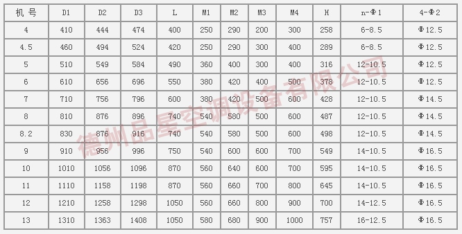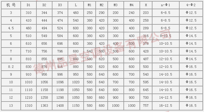 四、SWF(A)型風(fēng)機(jī)外形尺寸表(單位:mm)